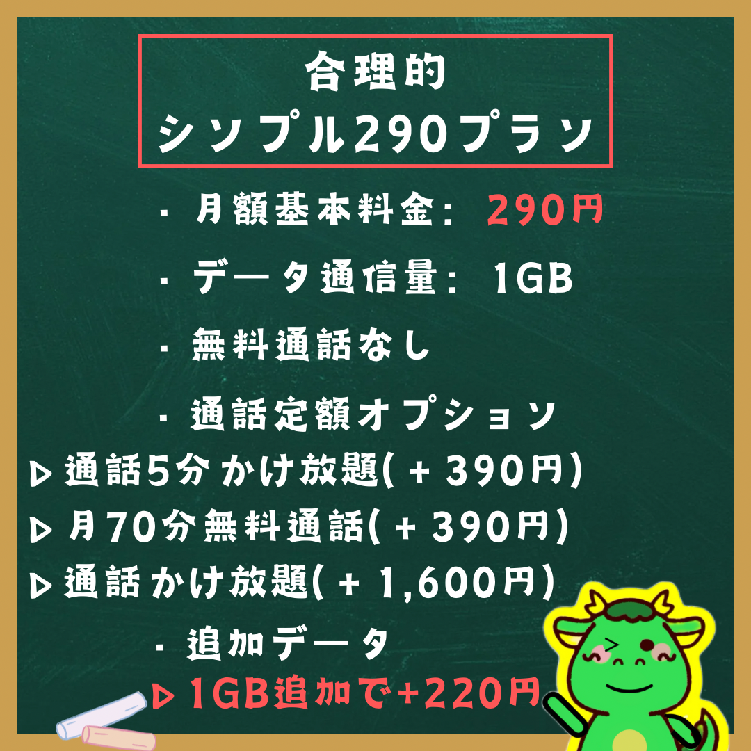 低価格な料金プラン:月額290円(1GB)からのプラン(合理的シンプルプランなど)があり、業界で最も最安級の料金設定が魅力になります!